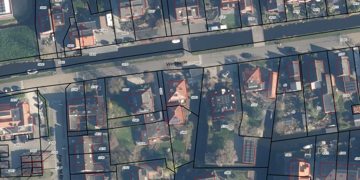 Het perceel waarop Westeinde 79 staat heeft een oppervlakte van 433 m². Dit is een groot perceel. De perceeloppervlakte wordt geregistreerd door het Kadaster. Gedetailleerde informatie over de maten van dit perceel kunt u vinden in het rapport Kadastrale kaart met maatvoering van Westeinde 79.