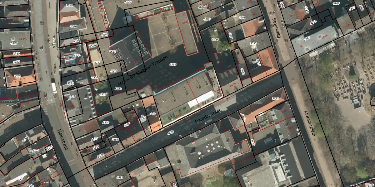 Achter de Steenen Trappen 13 is gelegen op kadastraal perceel RMD00D5253. Deze kadastrale aanduiding is uniek en wordt gebruikt door het Kadaster om eigendomsrechten en andere zakelijke rechten vast te leggen. Het perceel maakt onderdeel uit van de kadastrale gemeente Roermond.