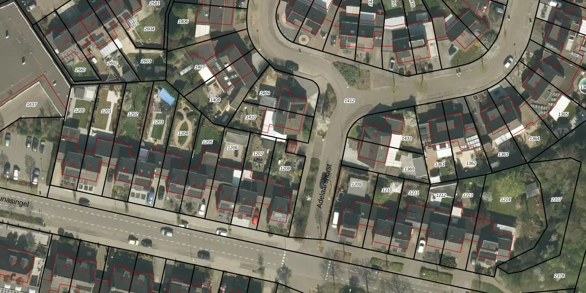 Het perceel waarop Adelaarshorst 1-A staat heeft een oppervlakte van 3708 m². Dit is een zeer groot perceel. De perceeloppervlakte wordt geregistreerd door het Kadaster. Gedetailleerde informatie over de maten van dit perceel kunt u vinden in het rapport Kadastrale kaart met maatvoering van Adelaarshorst 1-A.