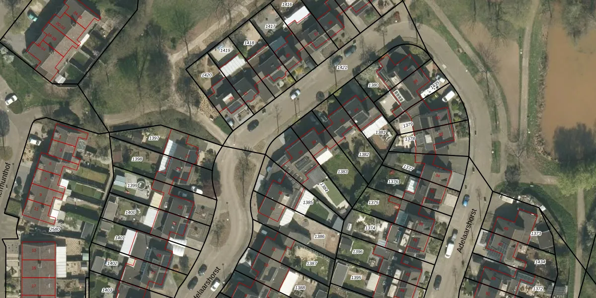 Het perceel waarop Adelaarshorst 18 staat heeft een oppervlakte van 306 m². Dit is een groot perceel. De perceeloppervlakte wordt geregistreerd door het Kadaster. Gedetailleerde informatie over de maten van dit perceel kunt u vinden in het rapport Kadastrale kaart met maatvoering van Adelaarshorst 18.