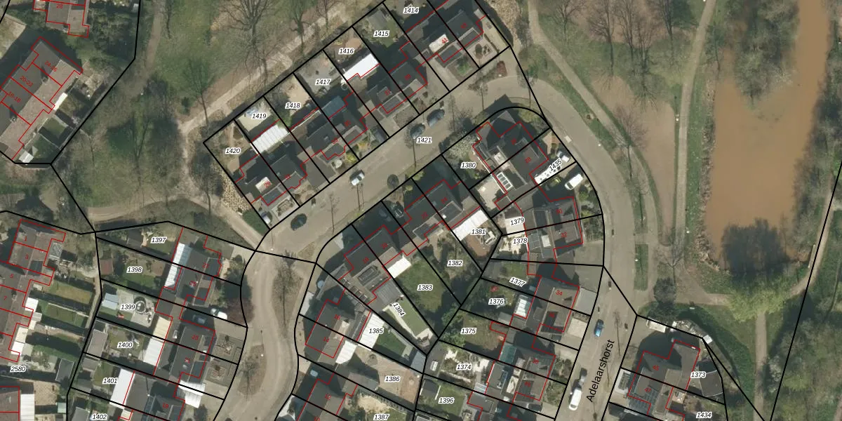 Het perceel waarop Adelaarshorst 22 staat heeft een oppervlakte van 268 m². Dit is een middelgroot perceel. De perceeloppervlakte wordt geregistreerd door het Kadaster. Gedetailleerde informatie over de maten van dit perceel kunt u vinden in het rapport Kadastrale kaart met maatvoering van Adelaarshorst 22.