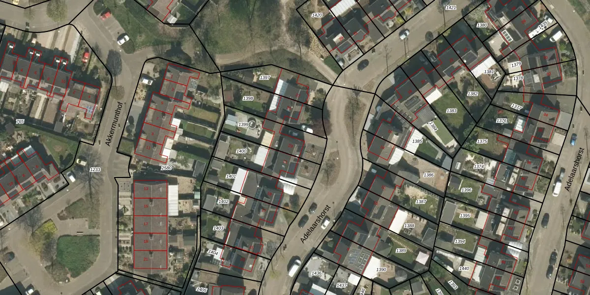 Het perceel waarop Adelaarshorst 23 staat heeft een oppervlakte van 321 m². Dit is een groot perceel. De perceeloppervlakte wordt geregistreerd door het Kadaster. Gedetailleerde informatie over de maten van dit perceel kunt u vinden in het rapport Kadastrale kaart met maatvoering van Adelaarshorst 23.