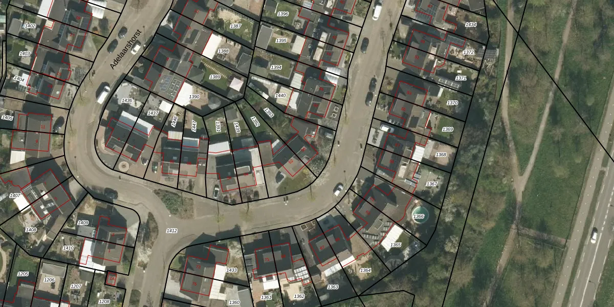 Het perceel waarop Adelaarshorst 50 staat heeft een oppervlakte van 302 m². Dit is een groot perceel. De perceeloppervlakte wordt geregistreerd door het Kadaster. Gedetailleerde informatie over de maten van dit perceel kunt u vinden in het rapport Kadastrale kaart met maatvoering van Adelaarshorst 50.