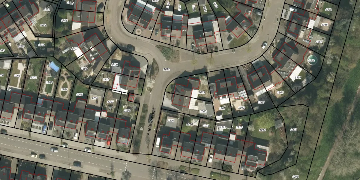 Gebruik de zoekbalk of klik op een perceel voor informatie over de adressen binnen dit perceel.