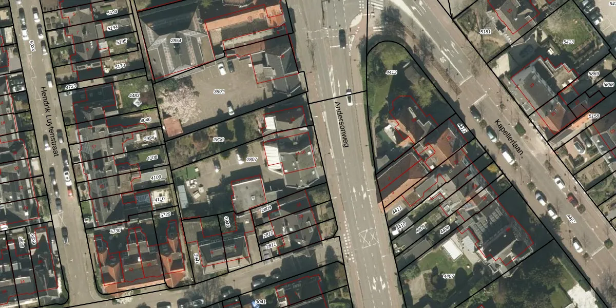 Het perceel waarop Andersonweg 14-A staat heeft een oppervlakte van 947 m². Dit is een groot perceel. De perceeloppervlakte wordt geregistreerd door het Kadaster. Gedetailleerde informatie over de maten van dit perceel kunt u vinden in het rapport Kadastrale kaart met maatvoering van Andersonweg 14-A.