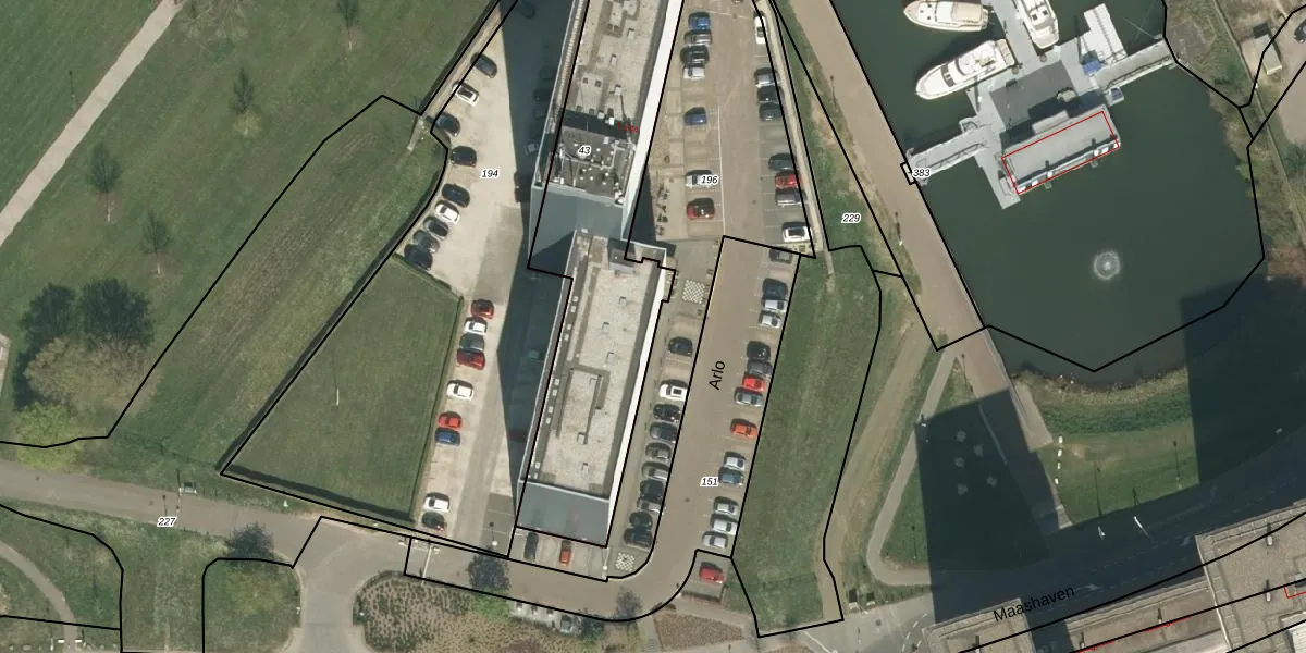 Arlo 1 is gelegen op kadastraal perceel RMD00K43. Deze kadastrale aanduiding is uniek en wordt gebruikt door het Kadaster om eigendomsrechten en andere zakelijke rechten vast te leggen. Het perceel maakt onderdeel uit van de kadastrale gemeente Roermond.