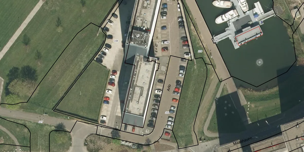 Arlo 20 is gelegen op kadastraal perceel RMD00K43. Deze kadastrale aanduiding is uniek en wordt gebruikt door het Kadaster om eigendomsrechten en andere zakelijke rechten vast te leggen. Het perceel maakt onderdeel uit van de kadastrale gemeente Roermond.