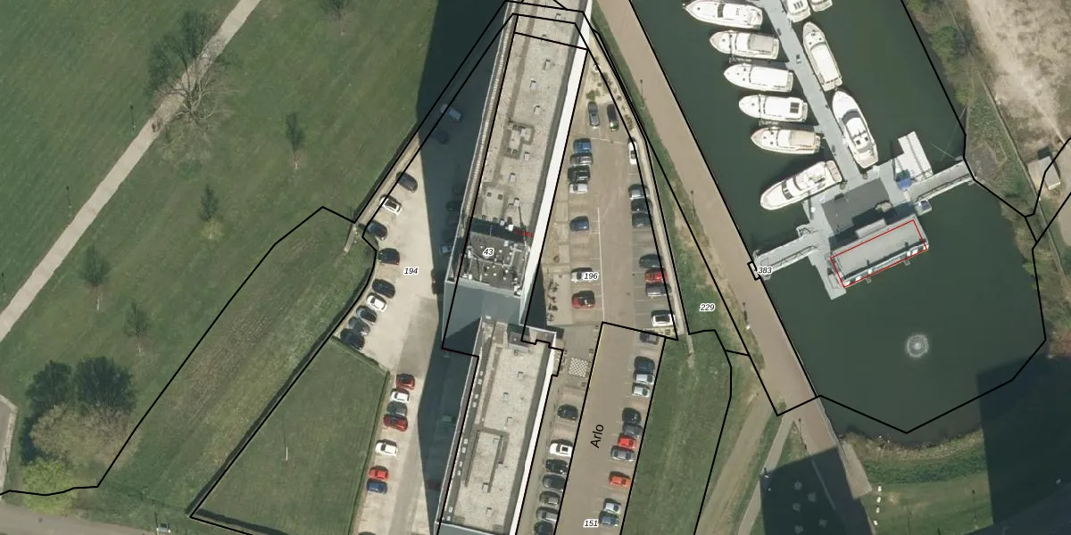 Arlo 5 is gelegen op kadastraal perceel RMD00K43. Deze kadastrale aanduiding is uniek en wordt gebruikt door het Kadaster om eigendomsrechten en andere zakelijke rechten vast te leggen. Het perceel maakt onderdeel uit van de kadastrale gemeente Roermond.