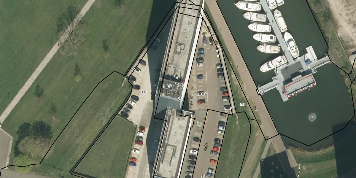 Arlo 55 is gelegen op kadastraal perceel RMD00K43. Deze kadastrale aanduiding is uniek en wordt gebruikt door het Kadaster om eigendomsrechten en andere zakelijke rechten vast te leggen. Het perceel maakt onderdeel uit van de kadastrale gemeente Roermond.
