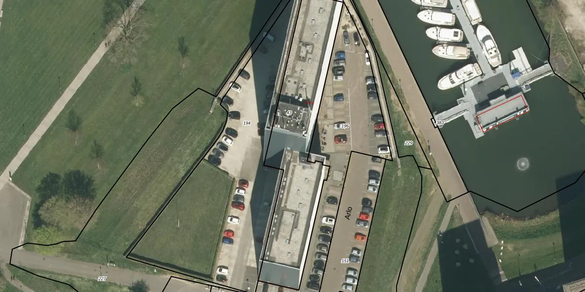 Arlo 64 is gelegen op kadastraal perceel RMD00K43. Deze kadastrale aanduiding is uniek en wordt gebruikt door het Kadaster om eigendomsrechten en andere zakelijke rechten vast te leggen. Het perceel maakt onderdeel uit van de kadastrale gemeente Roermond.