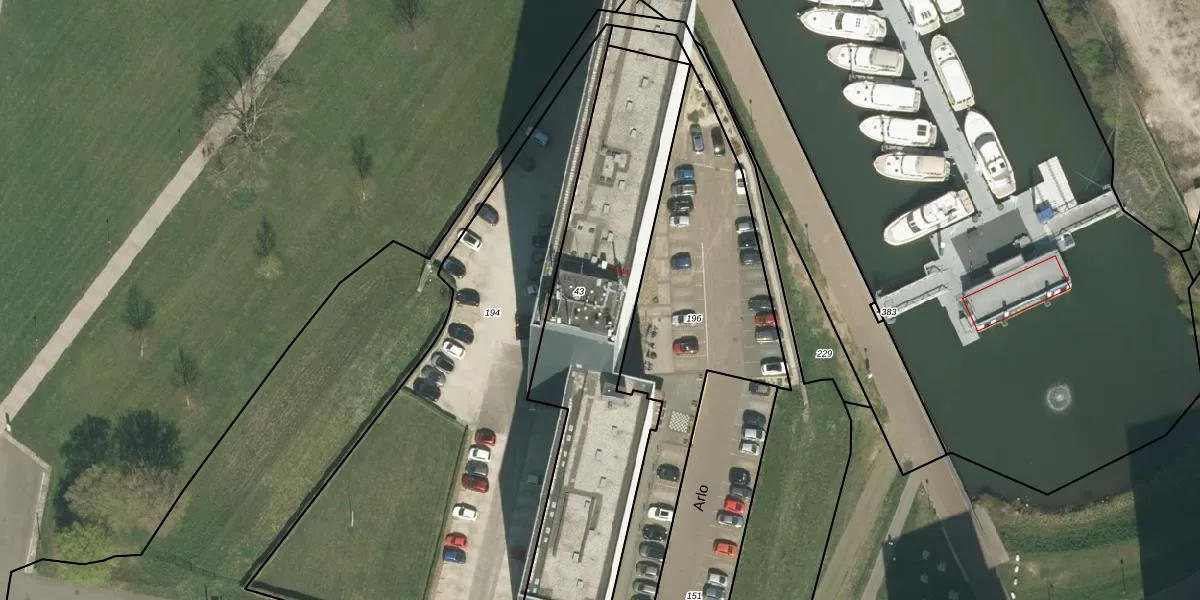 Arlo 65 is gelegen op kadastraal perceel RMD00K43. Deze kadastrale aanduiding is uniek en wordt gebruikt door het Kadaster om eigendomsrechten en andere zakelijke rechten vast te leggen. Het perceel maakt onderdeel uit van de kadastrale gemeente Roermond.