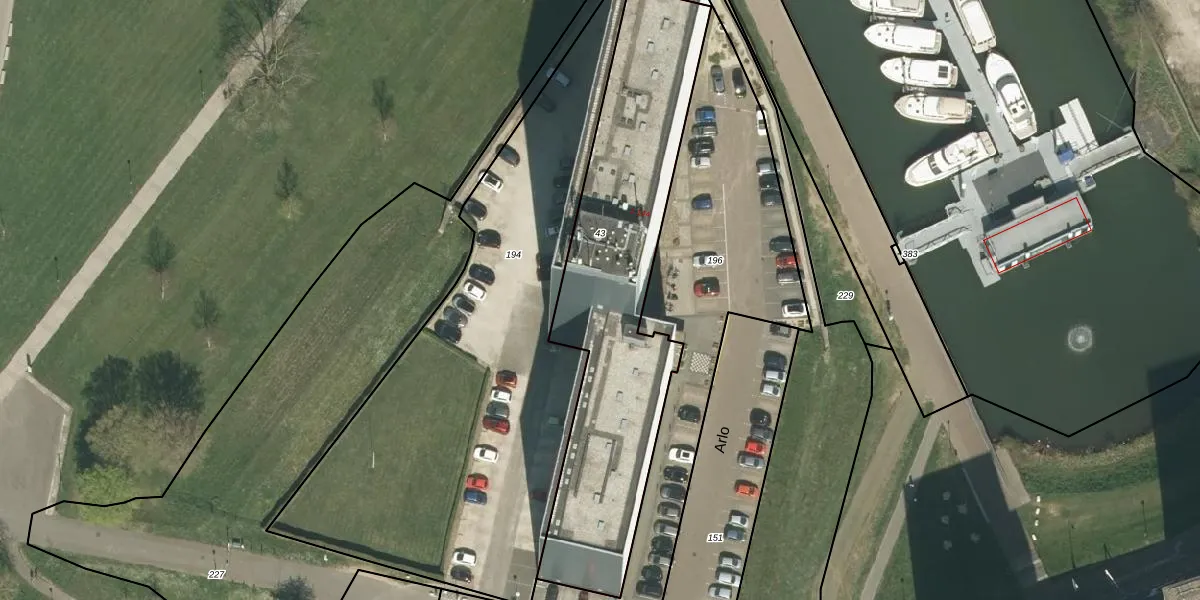 Arlo 74 is gelegen op kadastraal perceel RMD00K43. Deze kadastrale aanduiding is uniek en wordt gebruikt door het Kadaster om eigendomsrechten en andere zakelijke rechten vast te leggen. Het perceel maakt onderdeel uit van de kadastrale gemeente Roermond.