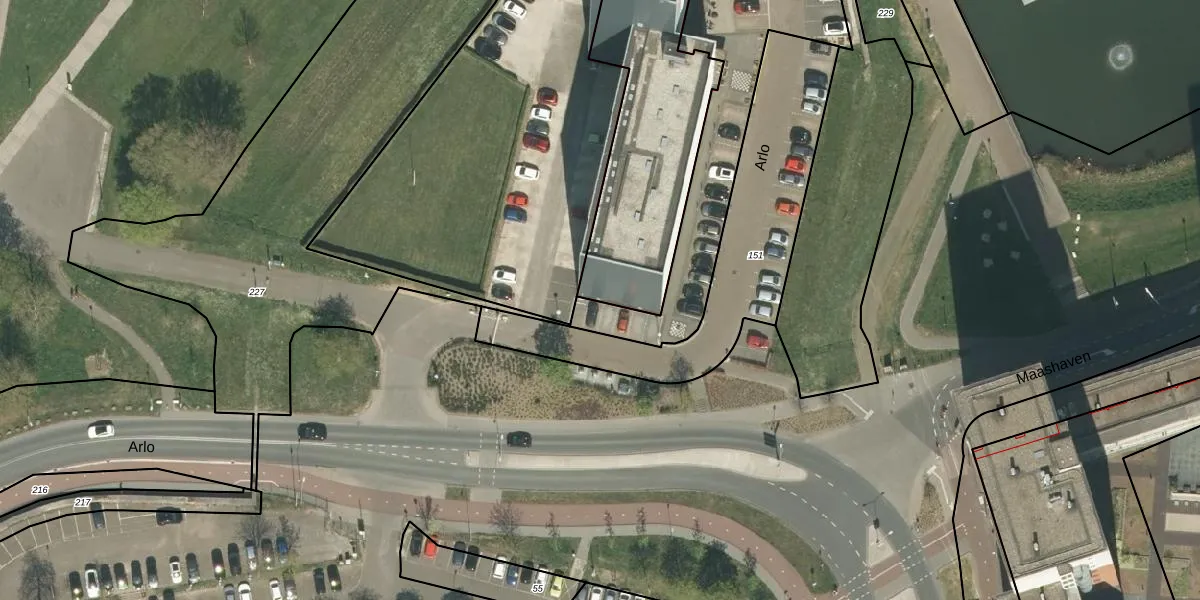 Arlo 82 is gelegen op kadastraal perceel RMD00K43. Deze kadastrale aanduiding is uniek en wordt gebruikt door het Kadaster om eigendomsrechten en andere zakelijke rechten vast te leggen. Het perceel maakt onderdeel uit van de kadastrale gemeente Roermond.