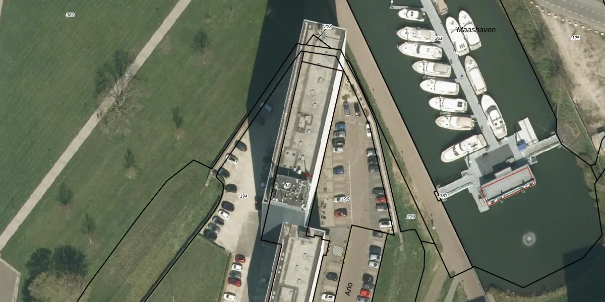 Arlo 86 is gelegen op kadastraal perceel RMD00K43. Deze kadastrale aanduiding is uniek en wordt gebruikt door het Kadaster om eigendomsrechten en andere zakelijke rechten vast te leggen. Het perceel maakt onderdeel uit van de kadastrale gemeente Roermond.