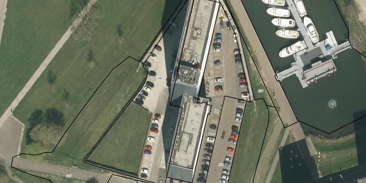 Arlo 90 is gelegen op kadastraal perceel RMD00K43. Deze kadastrale aanduiding is uniek en wordt gebruikt door het Kadaster om eigendomsrechten en andere zakelijke rechten vast te leggen. Het perceel maakt onderdeel uit van de kadastrale gemeente Roermond.
