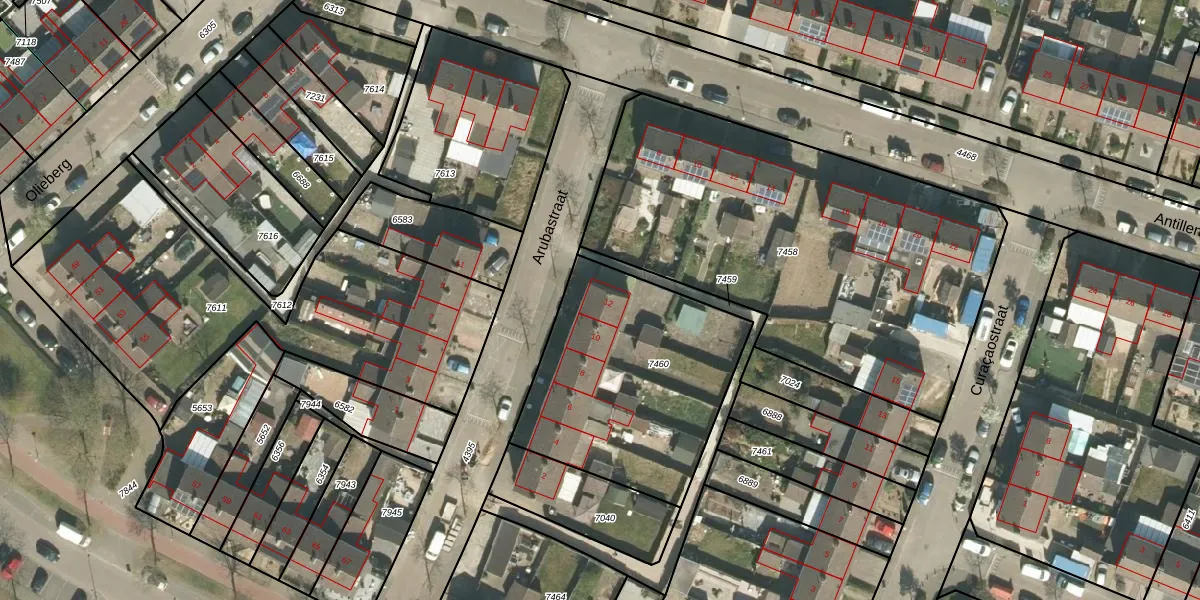 Het perceel waarop Arubastraat 12 staat heeft een oppervlakte van 1025 m². Dit is een zeer groot perceel. De perceeloppervlakte wordt geregistreerd door het Kadaster. Gedetailleerde informatie over de maten van dit perceel kunt u vinden in het rapport Kadastrale kaart met maatvoering van Arubastraat 12.
