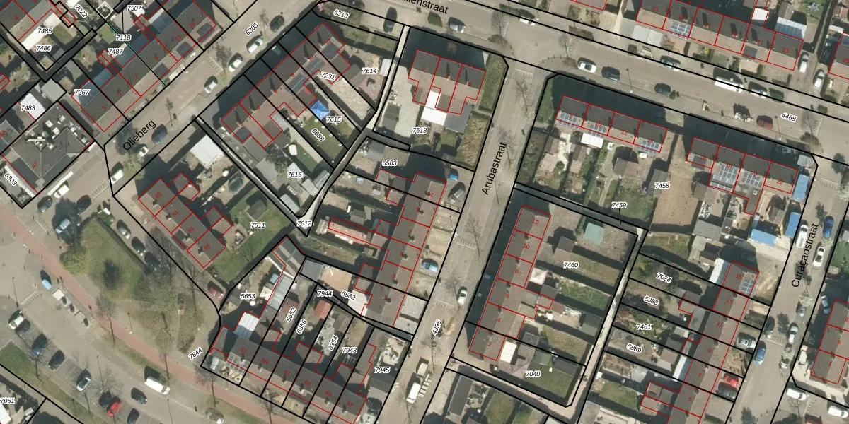 Het perceel waarop Arubastraat 9 staat heeft een oppervlakte van 1628 m². Dit is een zeer groot perceel. De perceeloppervlakte wordt geregistreerd door het Kadaster. Gedetailleerde informatie over de maten van dit perceel kunt u vinden in het rapport Kadastrale kaart met maatvoering van Arubastraat 9.