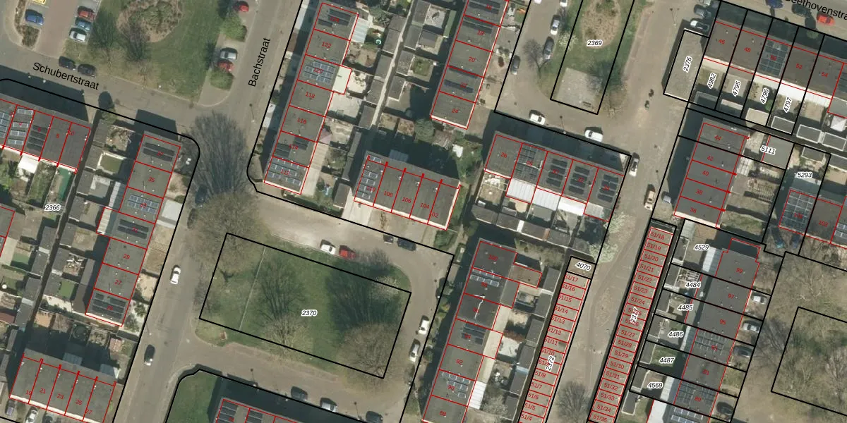 Het perceel waarop Bachstraat 104 staat heeft een oppervlakte van 1,1 ha. Dit is een zeer groot perceel. De perceeloppervlakte wordt geregistreerd door het Kadaster. Gedetailleerde informatie over de maten van dit perceel kunt u vinden in het rapport Kadastrale kaart met maatvoering van Bachstraat 104.