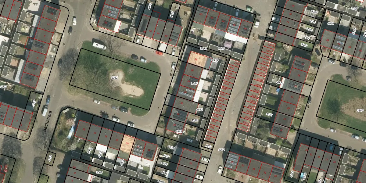 Bachstraat 32 is gelegen op kadastraal perceel RMD00F5544. Deze kadastrale aanduiding is uniek en wordt gebruikt door het Kadaster om eigendomsrechten en andere zakelijke rechten vast te leggen. Het perceel maakt onderdeel uit van de kadastrale gemeente Roermond.