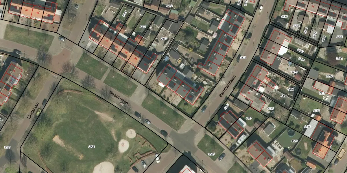 Het perceel waarop Beatrixlaan 30 staat heeft een oppervlakte van 4917 m². Dit is een zeer groot perceel. De perceeloppervlakte wordt geregistreerd door het Kadaster. Gedetailleerde informatie over de maten van dit perceel kunt u vinden in het rapport Kadastrale kaart met maatvoering van Beatrixlaan 30.
