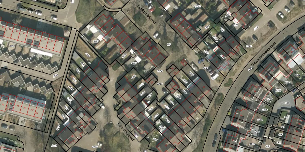 Het perceel waarop Beeldsnijdererf 1-6 staat heeft een oppervlakte van 155 m². Dit is een middelgroot perceel. De perceeloppervlakte wordt geregistreerd door het Kadaster. Gedetailleerde informatie over de maten van dit perceel kunt u vinden in het rapport Kadastrale kaart met maatvoering van Beeldsnijdererf 1-6.