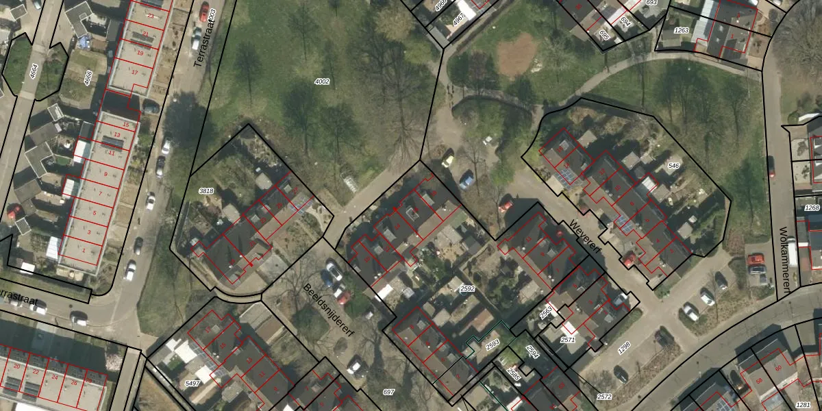 Het perceel waarop Beeldsnijdererf 16 staat heeft een oppervlakte van 1657 m². Dit is een zeer groot perceel. De perceeloppervlakte wordt geregistreerd door het Kadaster. Gedetailleerde informatie over de maten van dit perceel kunt u vinden in het rapport Kadastrale kaart met maatvoering van Beeldsnijdererf 16.