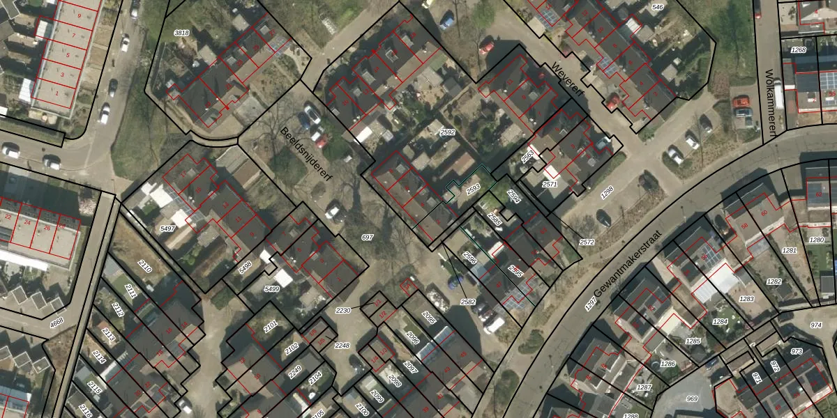 Het perceel waarop Beeldsnijdererf 4 staat heeft een oppervlakte van 1657 m². Dit is een zeer groot perceel. De perceeloppervlakte wordt geregistreerd door het Kadaster. Gedetailleerde informatie over de maten van dit perceel kunt u vinden in het rapport Kadastrale kaart met maatvoering van Beeldsnijdererf 4.
