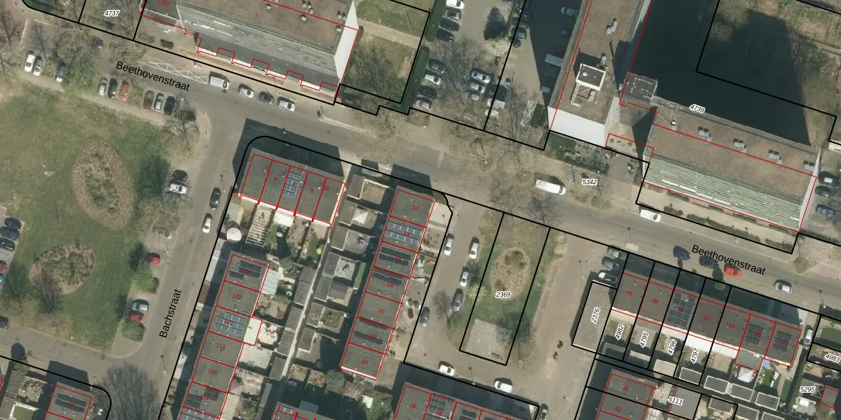 Beethovenstraat 12 is gelegen op kadastraal perceel RMD00F2371. Deze kadastrale aanduiding is uniek en wordt gebruikt door het Kadaster om eigendomsrechten en andere zakelijke rechten vast te leggen. Het perceel maakt onderdeel uit van de kadastrale gemeente Roermond.