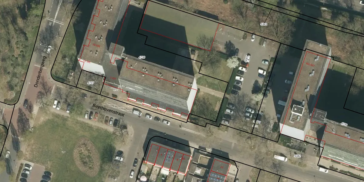 Het perceel waarop Beethovenstraat 141 staat heeft een oppervlakte van 3741 m². Dit is een zeer groot perceel. De perceeloppervlakte wordt geregistreerd door het Kadaster. Gedetailleerde informatie over de maten van dit perceel kunt u vinden in het rapport Kadastrale kaart met maatvoering van Beethovenstraat 141.