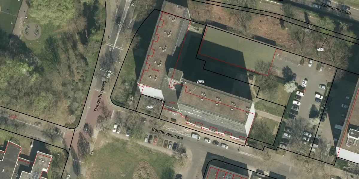 Het perceel waarop Beethovenstraat 207 staat heeft een oppervlakte van 3741 m². Dit is een zeer groot perceel. De perceeloppervlakte wordt geregistreerd door het Kadaster. Gedetailleerde informatie over de maten van dit perceel kunt u vinden in het rapport Kadastrale kaart met maatvoering van Beethovenstraat 207.