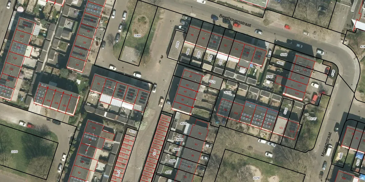 Het perceel waarop Beethovenstraat 40 staat heeft een oppervlakte van 3042 m². Dit is een zeer groot perceel. De perceeloppervlakte wordt geregistreerd door het Kadaster. Gedetailleerde informatie over de maten van dit perceel kunt u vinden in het rapport Kadastrale kaart met maatvoering van Beethovenstraat 40.