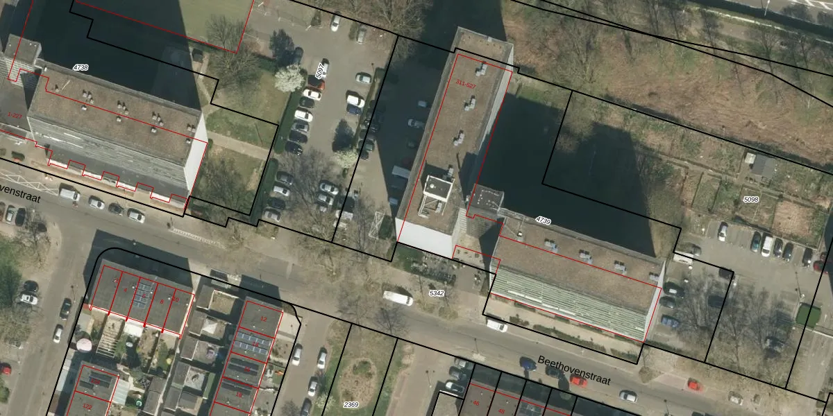 Het perceel waarop Beethovenstraat 401 staat heeft een oppervlakte van 3793 m². Dit is een zeer groot perceel. De perceeloppervlakte wordt geregistreerd door het Kadaster. Gedetailleerde informatie over de maten van dit perceel kunt u vinden in het rapport Kadastrale kaart met maatvoering van Beethovenstraat 401.