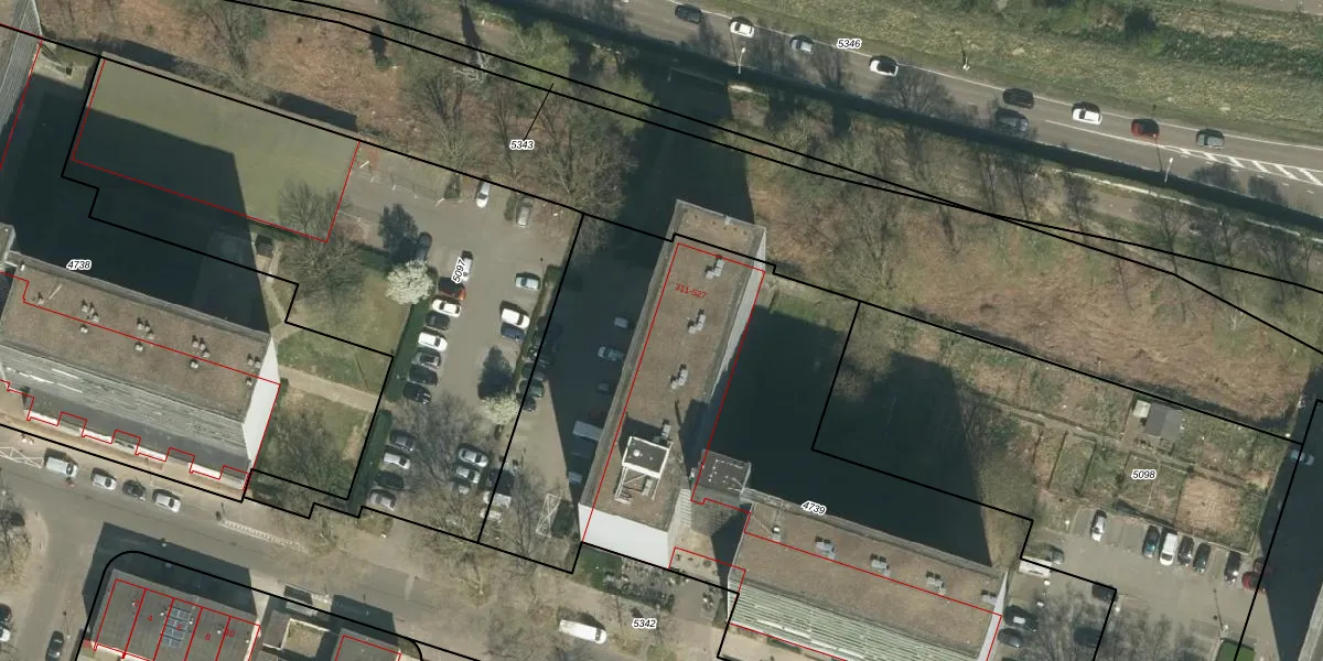 Het perceel waarop het adres ligt is RMD00-F-4739. De afkorting 'RMD00' staat voor kadastrale gemeente Roermond. De oppervlakte van het perceel is 3793 m². Dat is groter dan gemiddeld in Roermond, waar de gemiddelde perceeloppervlakte op 2210,91 m² ligt. De grootste perceeloppervlakte in de kadastrale gemeente is 69,4 ha. De kleinste oppervlakte bedraagt 0 m². Er zijn 98 adressen aanwezig op het perceel. In de Basisregistratie Kadaster (BRK) werden de grenzen van het perceel geregistreerd op 25-11-2009.