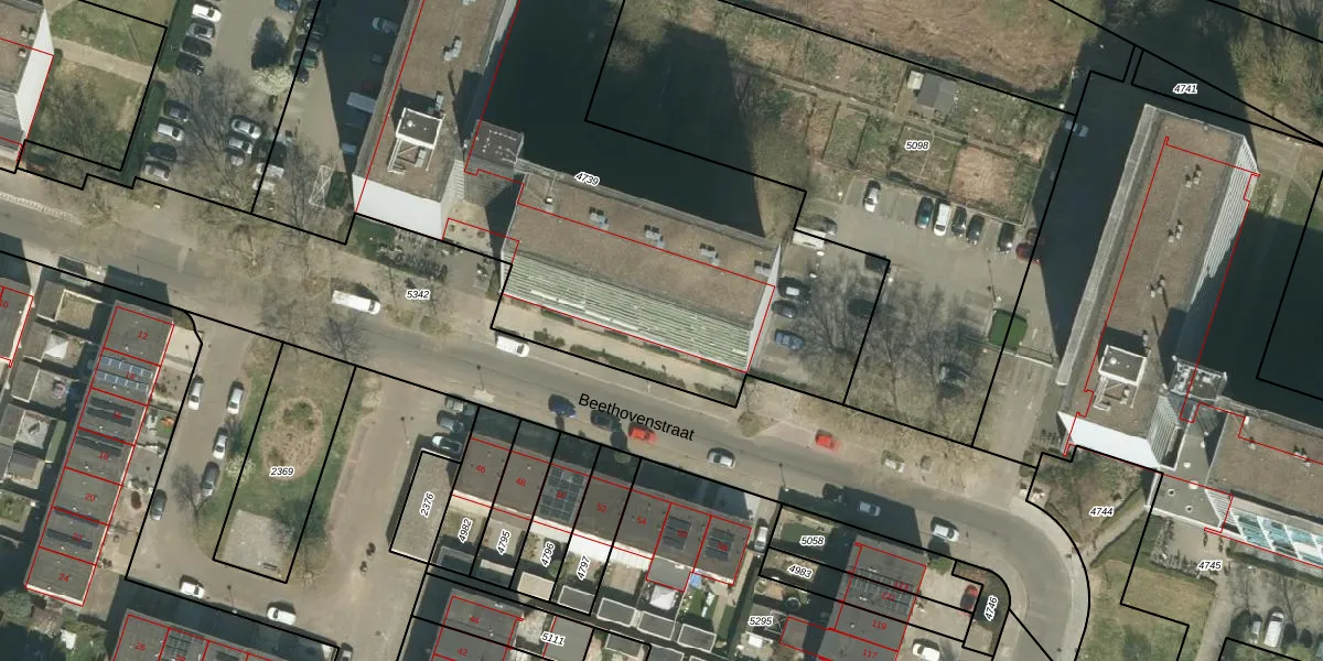 Het perceel waarop Beethovenstraat 423 staat heeft een oppervlakte van 3793 m². Dit is een zeer groot perceel. De perceeloppervlakte wordt geregistreerd door het Kadaster. Gedetailleerde informatie over de maten van dit perceel kunt u vinden in het rapport Kadastrale kaart met maatvoering van Beethovenstraat 423.