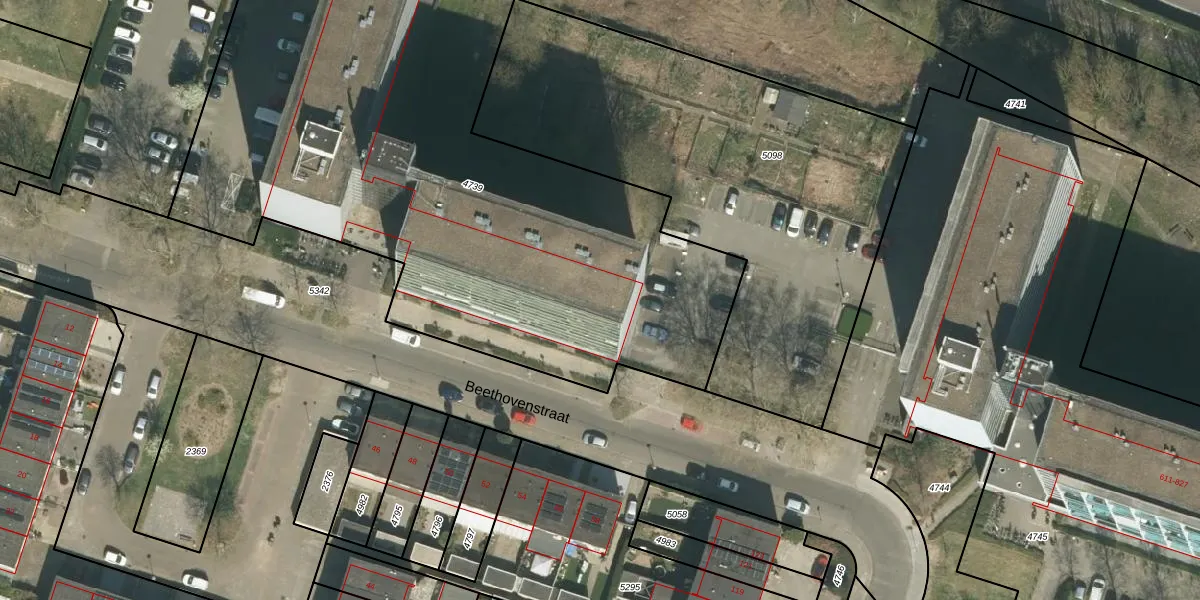 Het perceel waarop Beethovenstraat 461 staat heeft een oppervlakte van 3793 m². Dit is een zeer groot perceel. De perceeloppervlakte wordt geregistreerd door het Kadaster. Gedetailleerde informatie over de maten van dit perceel kunt u vinden in het rapport Kadastrale kaart met maatvoering van Beethovenstraat 461.