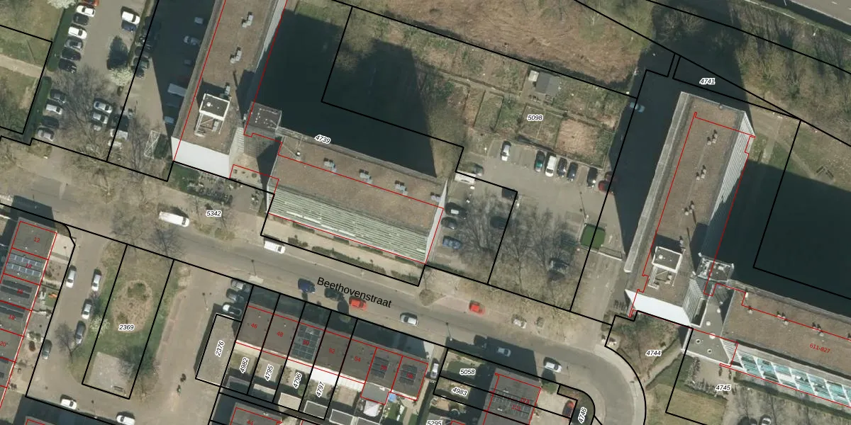 Het perceel waarop Beethovenstraat 521 staat heeft een oppervlakte van 3793 m². Dit is een zeer groot perceel. De perceeloppervlakte wordt geregistreerd door het Kadaster. Gedetailleerde informatie over de maten van dit perceel kunt u vinden in het rapport Kadastrale kaart met maatvoering van Beethovenstraat 521.