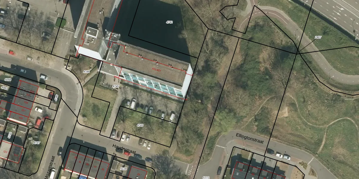 Het perceel waarop Beethovenstraat 721 staat heeft een oppervlakte van 4052 m². Dit is een zeer groot perceel. De perceeloppervlakte wordt geregistreerd door het Kadaster. Gedetailleerde informatie over de maten van dit perceel kunt u vinden in het rapport Kadastrale kaart met maatvoering van Beethovenstraat 721.