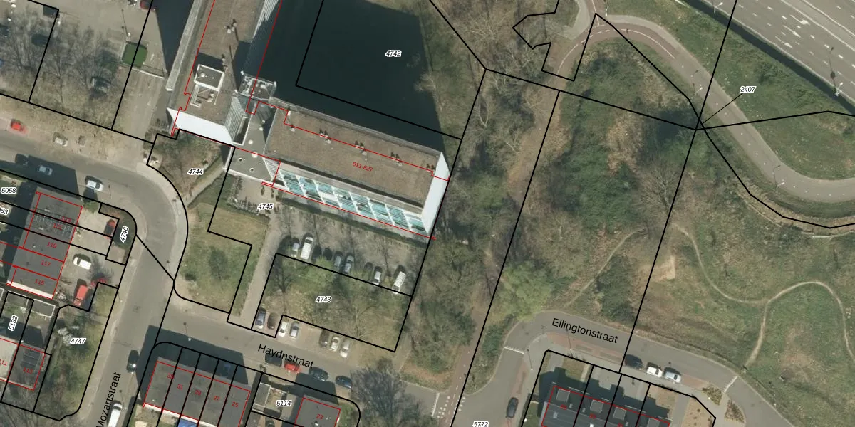 Het perceel waarop Beethovenstraat 781 staat heeft een oppervlakte van 4052 m². Dit is een zeer groot perceel. De perceeloppervlakte wordt geregistreerd door het Kadaster. Gedetailleerde informatie over de maten van dit perceel kunt u vinden in het rapport Kadastrale kaart met maatvoering van Beethovenstraat 781.