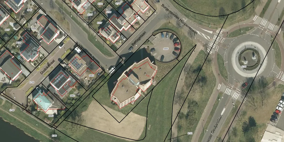 Berlagelaan 13 is gelegen op kadastraal perceel RMD00C5955. Deze kadastrale aanduiding is uniek en wordt gebruikt door het Kadaster om eigendomsrechten en andere zakelijke rechten vast te leggen. Het perceel maakt onderdeel uit van de kadastrale gemeente Roermond.