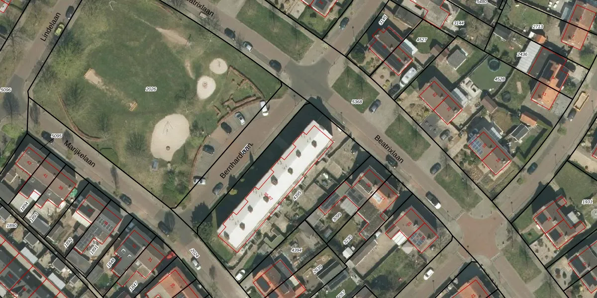 Het perceel waarop Bernhardlaan 39 staat heeft een oppervlakte van 1530 m². Dit is een zeer groot perceel. De perceeloppervlakte wordt geregistreerd door het Kadaster. Gedetailleerde informatie over de maten van dit perceel kunt u vinden in het rapport Kadastrale kaart met maatvoering van Bernhardlaan 39.