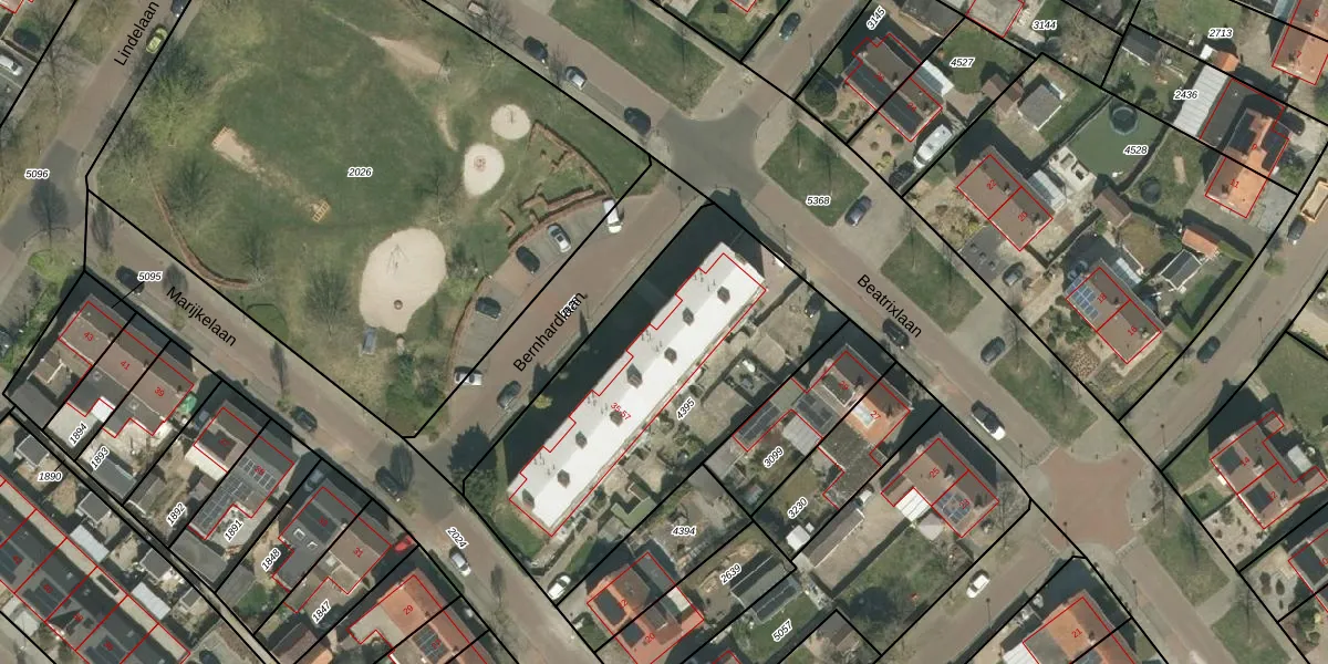 Het perceel waarop Bernhardlaan 41 staat heeft een oppervlakte van 1530 m². Dit is een zeer groot perceel. De perceeloppervlakte wordt geregistreerd door het Kadaster. Gedetailleerde informatie over de maten van dit perceel kunt u vinden in het rapport Kadastrale kaart met maatvoering van Bernhardlaan 41.