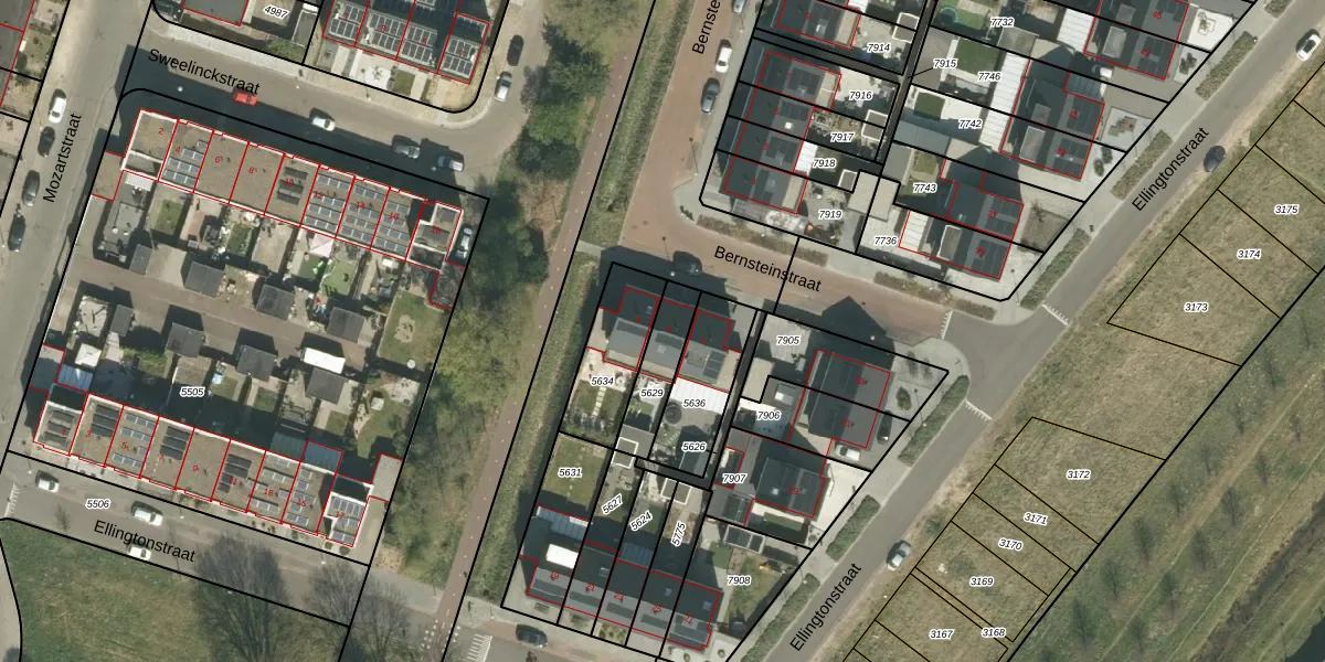 Gebruik de zoekbalk of klik op een perceel voor informatie over de adressen binnen dit perceel.