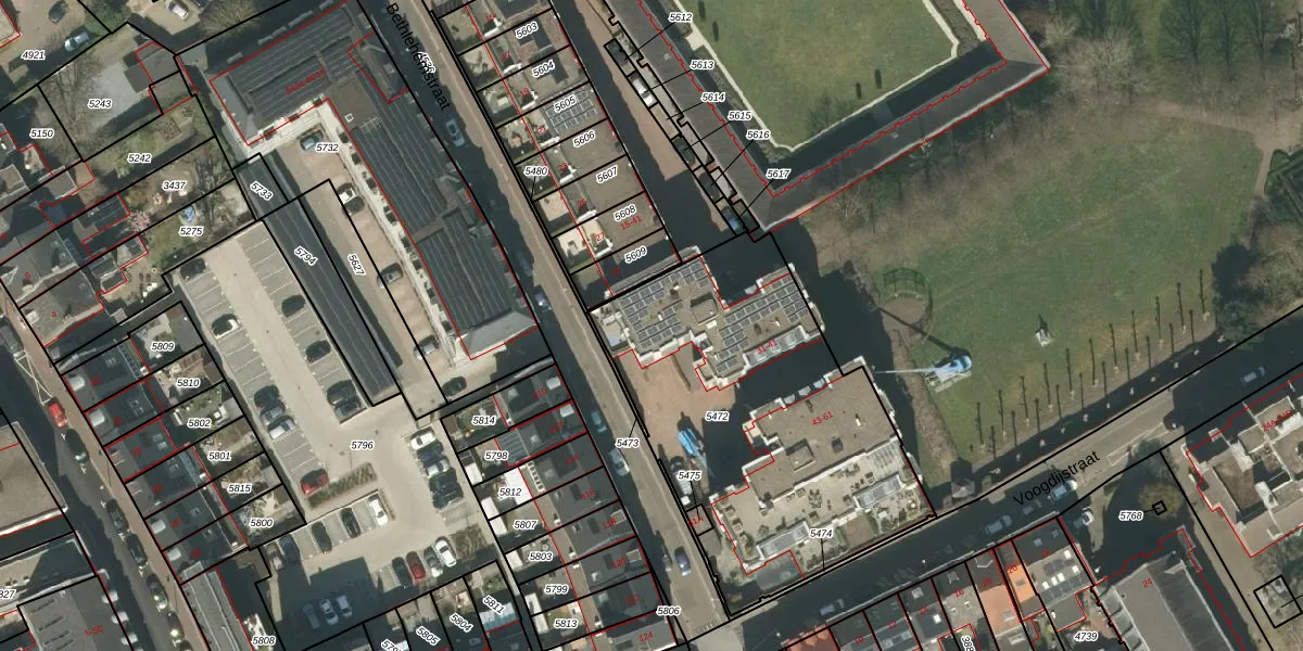 Het perceel waarop Bethlehemstraat 35 staat heeft een oppervlakte van 1666 m². Dit is een zeer groot perceel. De perceeloppervlakte wordt geregistreerd door het Kadaster. Gedetailleerde informatie over de maten van dit perceel kunt u vinden in het rapport Kadastrale kaart met maatvoering van Bethlehemstraat 35.