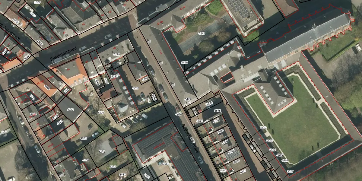 Bethlehemstraat 7 is gelegen op kadastraal perceel RMD00D5343. Deze kadastrale aanduiding is uniek en wordt gebruikt door het Kadaster om eigendomsrechten en andere zakelijke rechten vast te leggen. Het perceel maakt onderdeel uit van de kadastrale gemeente Roermond.