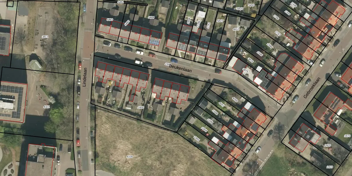 Beukenlaan 3 is gelegen op kadastraal perceel RMD00F1600. Deze kadastrale aanduiding is uniek en wordt gebruikt door het Kadaster om eigendomsrechten en andere zakelijke rechten vast te leggen. Het perceel maakt onderdeel uit van de kadastrale gemeente Roermond.
