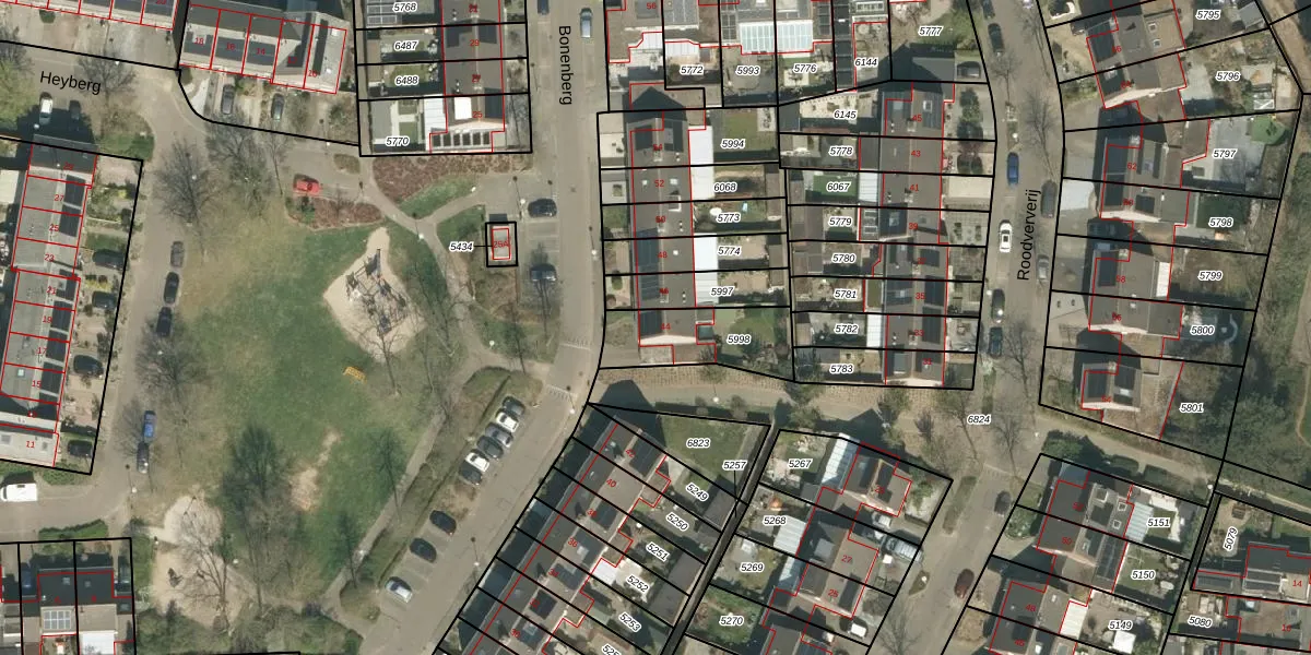 Het perceel waarop Bonenberg 44 staat heeft een oppervlakte van 266 m². Dit is een middelgroot perceel. De perceeloppervlakte wordt geregistreerd door het Kadaster. Gedetailleerde informatie over de maten van dit perceel kunt u vinden in het rapport Kadastrale kaart met maatvoering van Bonenberg 44.
