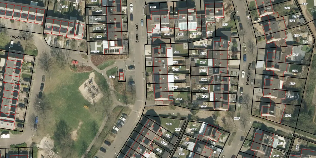 Het perceel waarop Bonenberg 48 staat heeft een oppervlakte van 152 m². Dit is een middelgroot perceel. De perceeloppervlakte wordt geregistreerd door het Kadaster. Gedetailleerde informatie over de maten van dit perceel kunt u vinden in het rapport Kadastrale kaart met maatvoering van Bonenberg 48.