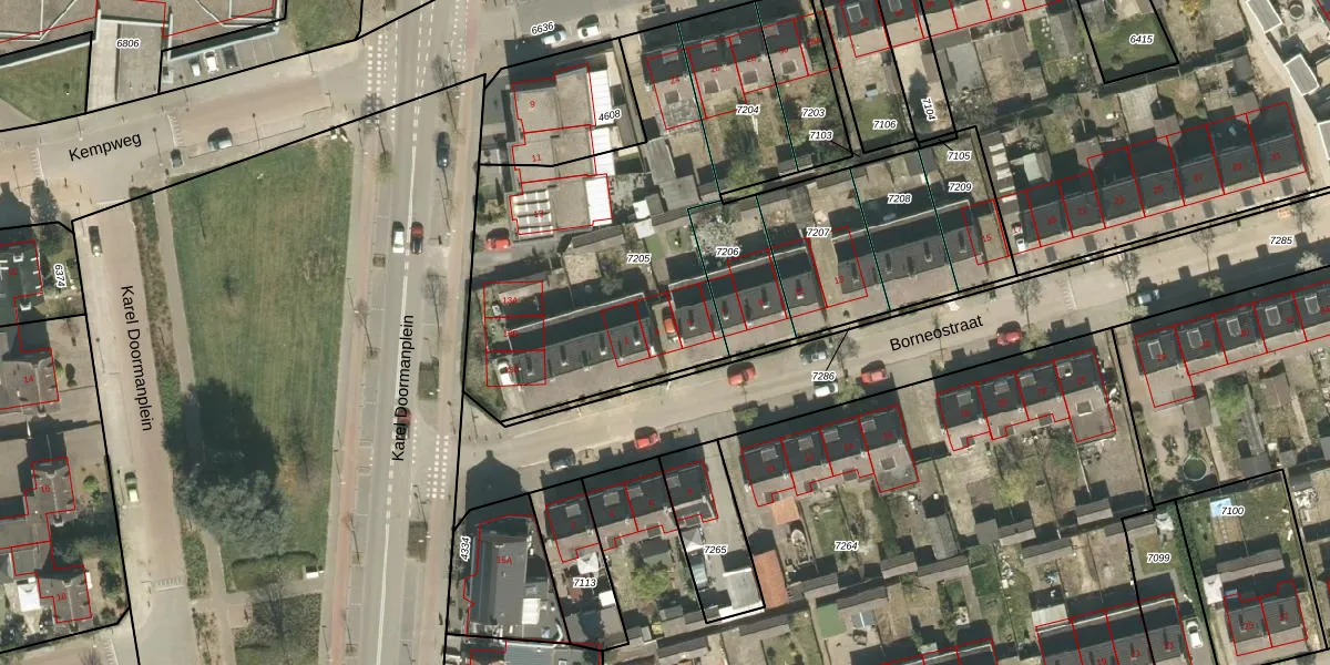 Borneostraat 3 is gelegen op kadastraal perceel RMD00E7205. Deze kadastrale aanduiding is uniek en wordt gebruikt door het Kadaster om eigendomsrechten en andere zakelijke rechten vast te leggen. Het perceel maakt onderdeel uit van de kadastrale gemeente Roermond.