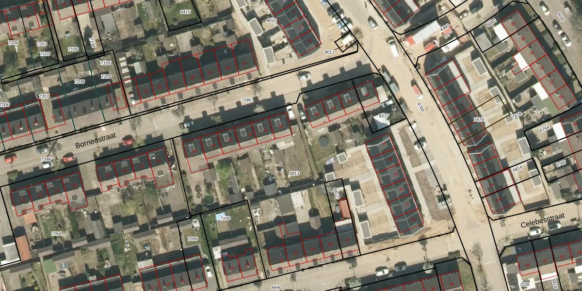 Het perceel waarop Borneostraat 36-D staat heeft een oppervlakte van 3835 m². Dit is een zeer groot perceel. De perceeloppervlakte wordt geregistreerd door het Kadaster. Gedetailleerde informatie over de maten van dit perceel kunt u vinden in het rapport Kadastrale kaart met maatvoering van Borneostraat 36-D.