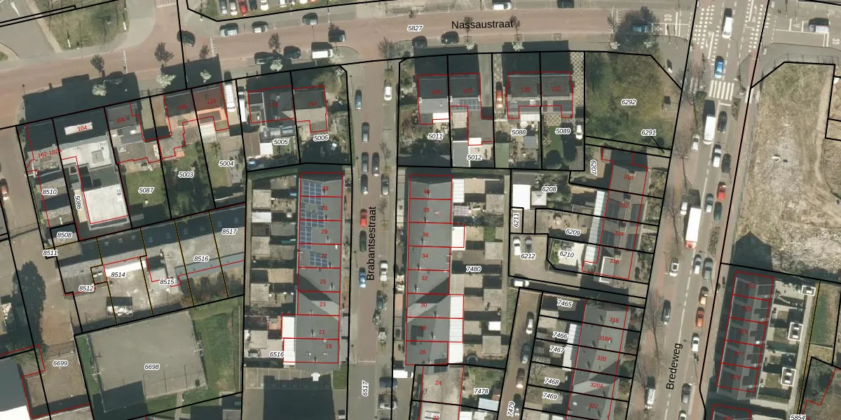 Het perceel waarop Brabantsestraat 38 staat heeft een oppervlakte van 1560 m². Dit is een zeer groot perceel. De perceeloppervlakte wordt geregistreerd door het Kadaster. Gedetailleerde informatie over de maten van dit perceel kunt u vinden in het rapport Kadastrale kaart met maatvoering van Brabantsestraat 38.